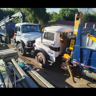 Especialistas en camiones con hidrogrúas y hoyadoras para obras
